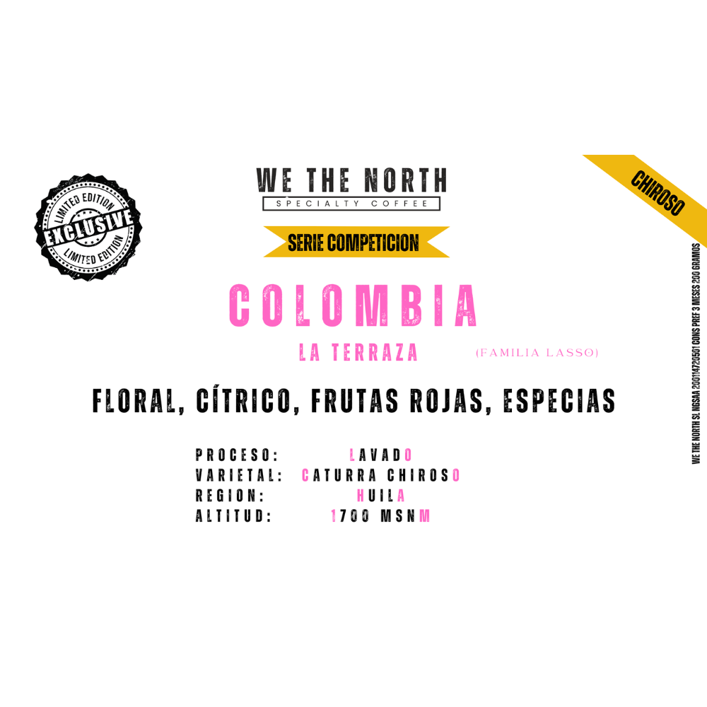 La Terraza es un café excepcional cultivado por la Familia Lasso en la región de Huila, una zona reconocida por producir algunos de los cafés más equilibrados y aromáticos de Colombia. Crece a 1700 metros sobre el nivel del mar, donde las condiciones climáticas y los suelos volcánicos enriquecen su perfil sensorial.
