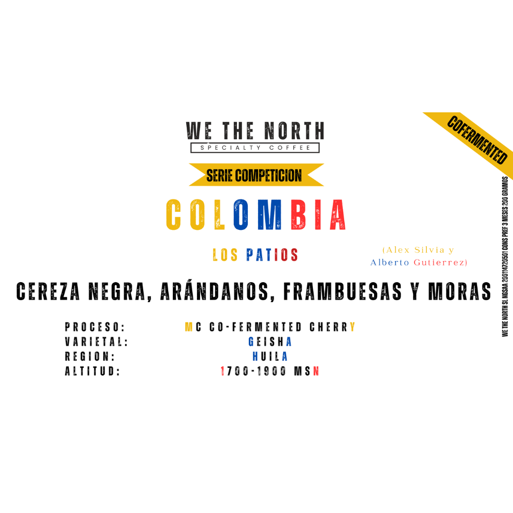 SERIE COMPETICIONWE THE NORTHCAFÉSCOLOMBIAUn Geisha de precisión milimétrica, cofermentado con cerezas seleccionadas, que ofrece una intensidad frutal extraordinaria con equilibrio entre dulzura, acidez y textura aterciopelada.